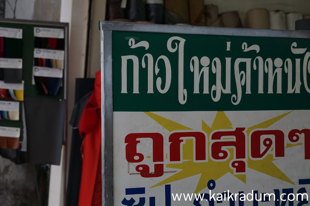 ถนน ขายหนัง ขายซิป อุปกรณ์ตกแต่งต่างๆ เดินเลี้ยวขวาไป ทั้งสองฝั่งถนน จะเจอร้านขายหนังหลาย